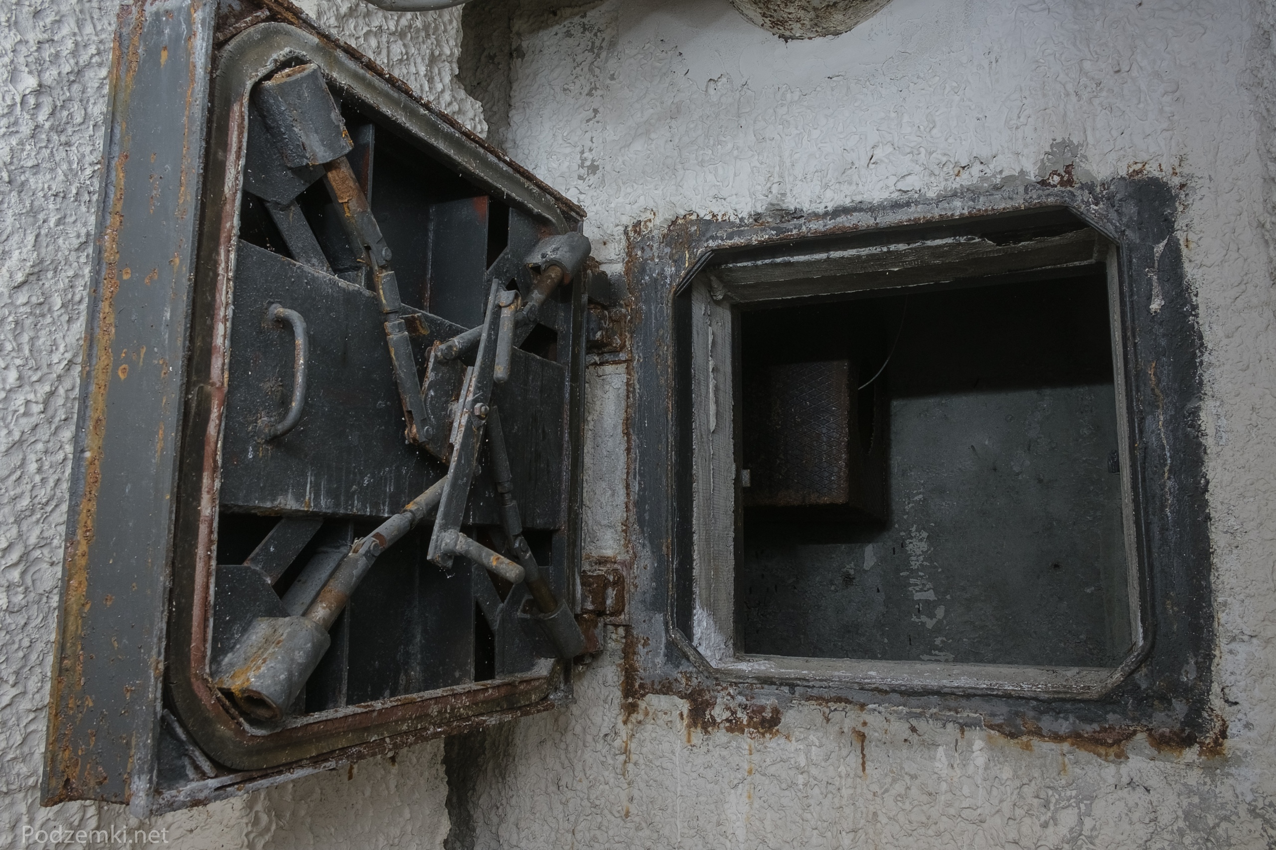 По какой-то причине во всех венткамерах сооружения были смонтированы только защитно-герметические ставни, хотя за ними видна рама герметического ставня с упорами для тарельчатых клиновых запоров.